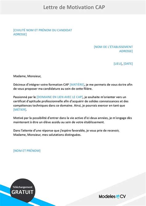Lettre De Motivation Cap
